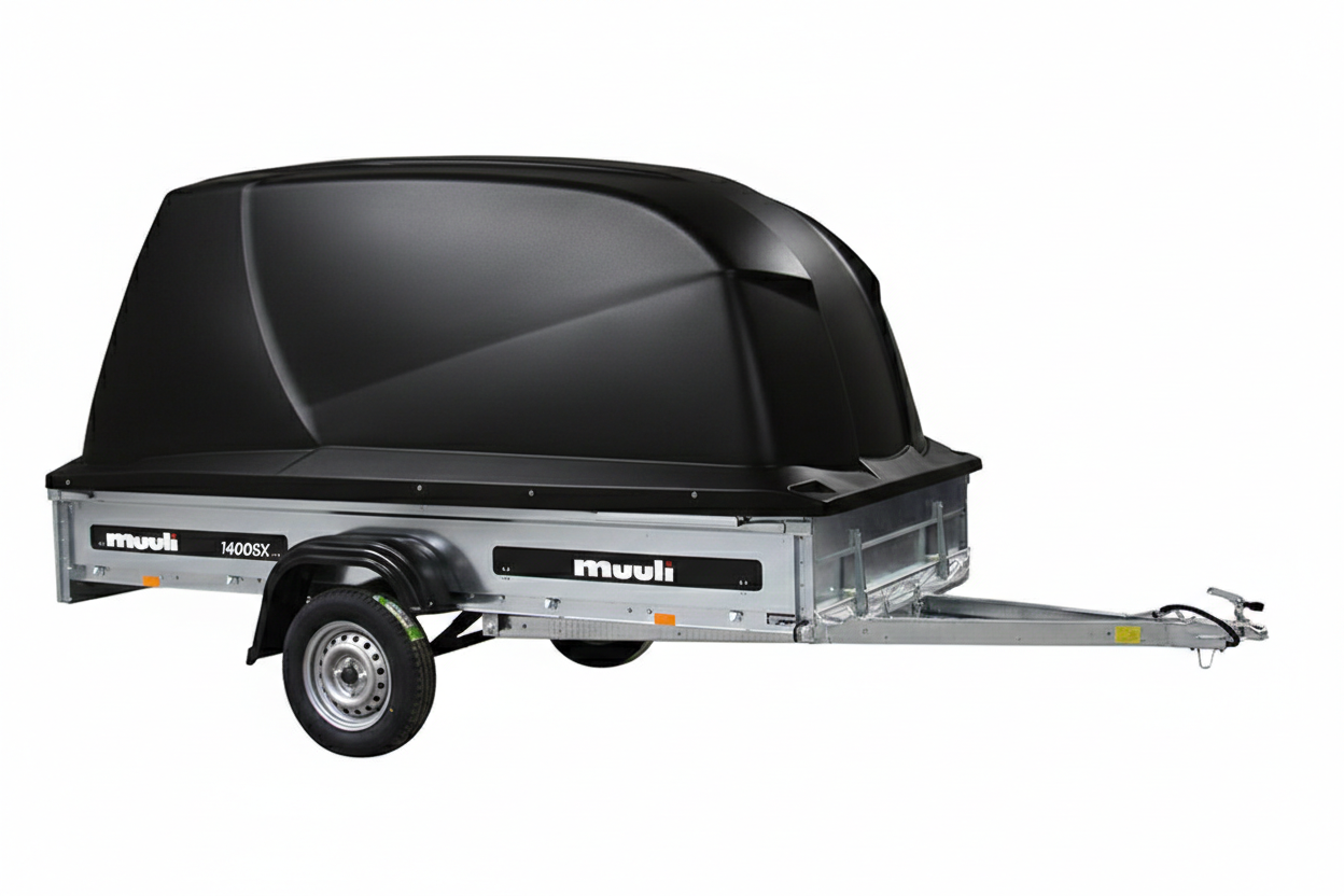 Muuli 1400SX -peräkärry sopii hyvin rakentajan ja remontoijan käyttöön sekä erilaisiin vapaa-ajan tarpeisiin. Monipuolisessa kippikärryssä on mukana tyylikkään musta, 110 cm korkea lukittava Juncar-kuomu, jonka alla kuorma pysyy kuivana ja tallessa. Hyötykorkeus on 140cm.