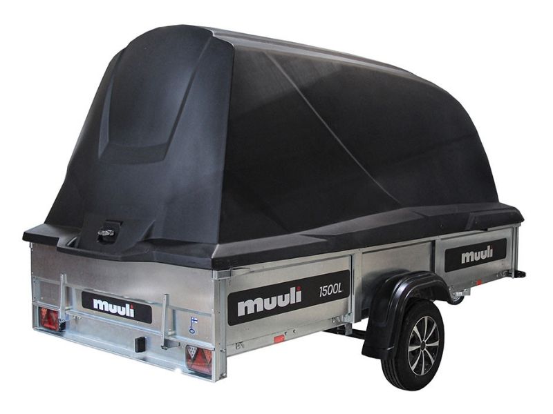 Muuli 1500L -peräkärry sopii leveän lavakoon ja korkeiden 39cm laitojen ansiosta erityisen hyvin erilaisten raskaiden työkoneiden, moottorikelkkojen ja mönkijöiden kuljettamiseen. Peräkärryn kippitoiminto helpottaa ajettavien laitteiden kuormausta. Peräkärryyn sisältyy 120 cm korkea, väriltään tyylikkään musta Juncar -kuomu, jonka alla kuorma pysyy kuivana ja suojassa. Hyötykorkeus on 159cm. Kuomukärryn vakiovarustukseen kuuluu nokkapyörä ja kipin kaasujousi.