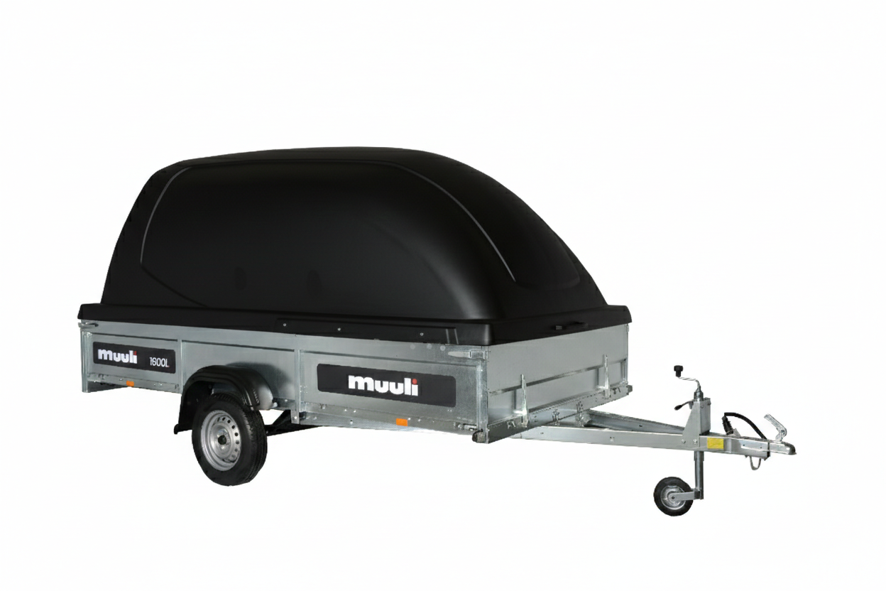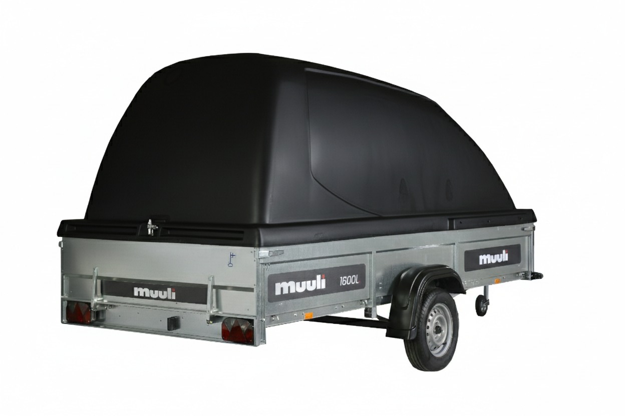 Muuli 1600L -peräkärryssä on leveä lava ja korkeat 39cm laidat, ja se sopii mainiosti raskaiden työkoneiden, moottorikelkkojen ja mönkijöiden kuljettamiseen. Kippitoiminto helpottaa ajettavien laitteiden kuormausta. Peräkärryyn sisältyy 120 cm korkea, väriltään tyylikkään musta Juncar -kuomu, jonka alla kuorma pysyy kuivana ja suojassa. Hyötykorkeus on 159cm. Kuomukärryn varustukseen kuuluu nokkapyörä ja kipin kaasujousi.